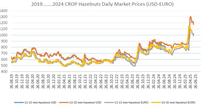 At the INC meeting, Turkey’s hazelnut crop expectation was announced as 609,000 tons. However, according to our own studies, we do not see the possibility of the crop being 500,000 tons. The picture will become clearer in the later days of June. However, after mid-July, we will start talking about a crop that is close to reality.